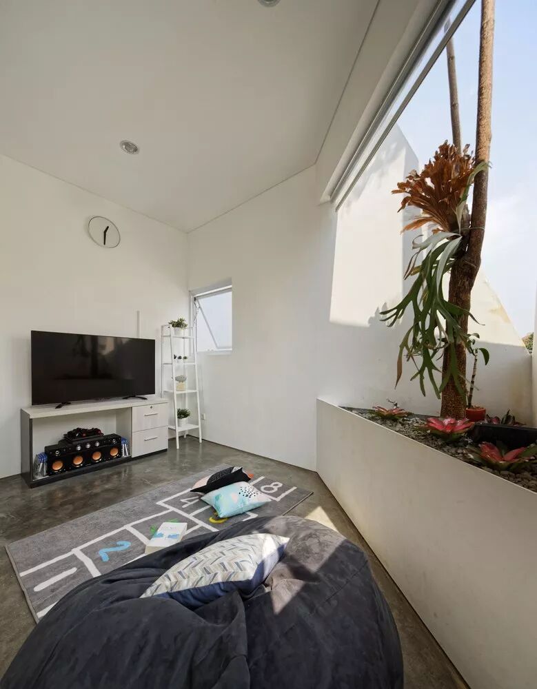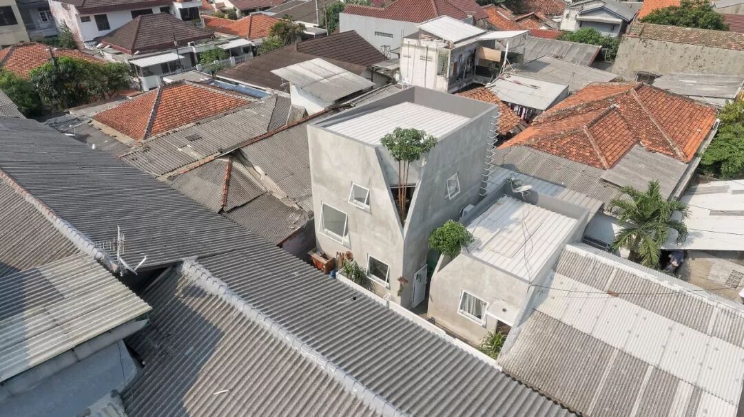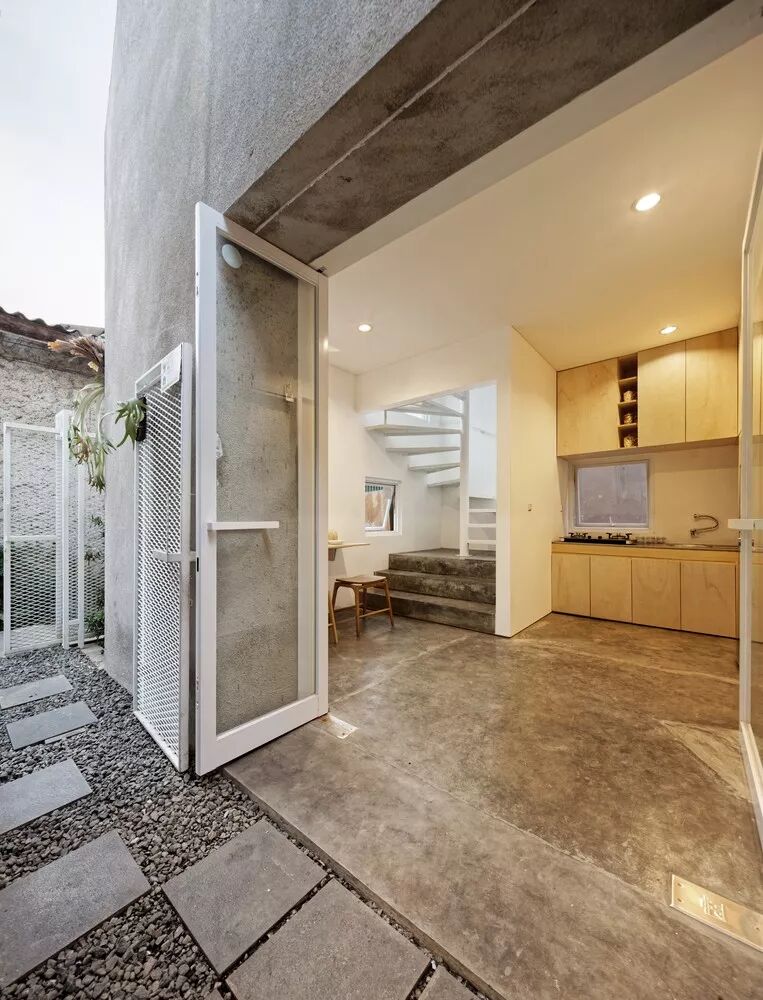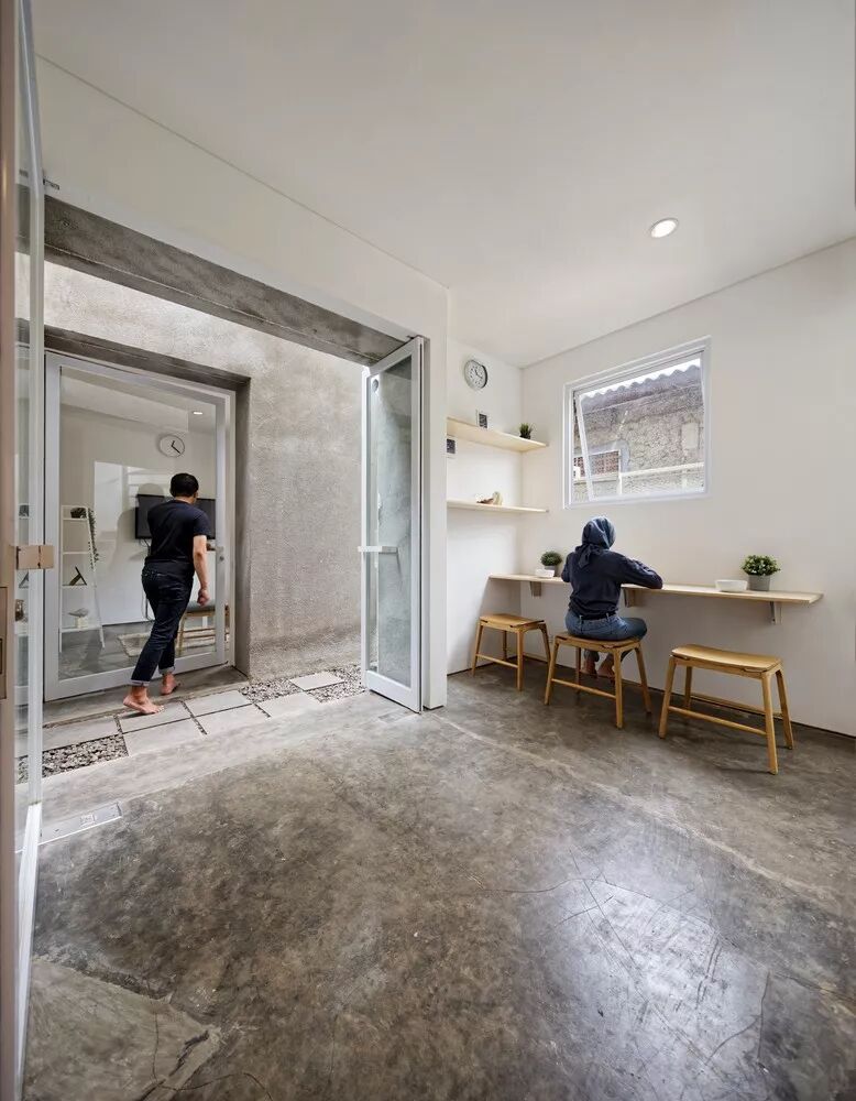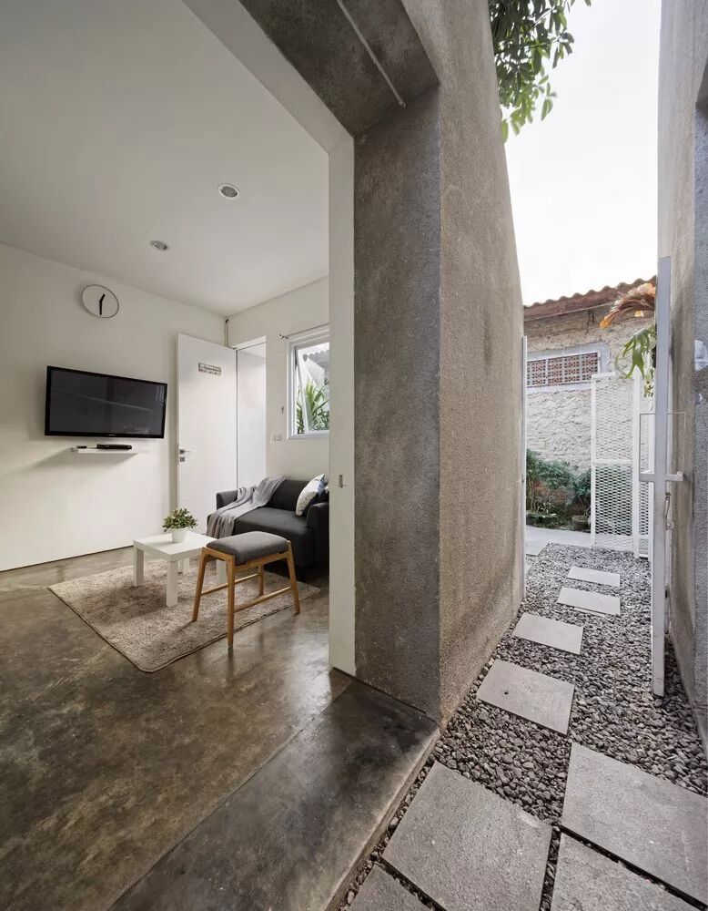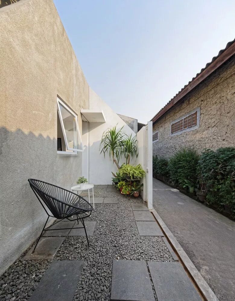 这栋70㎡的住宅位于Cipulir——一个人口稠密的区域。房前有一条1.5米宽的小巷,可供摩托车通行。基地上建造了两栋房屋,其中一栋供四口之家使用,另一栋则供一位残疾妇女使用。屋主是兄妹,因此有了“双生宅”的概念。