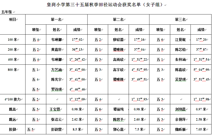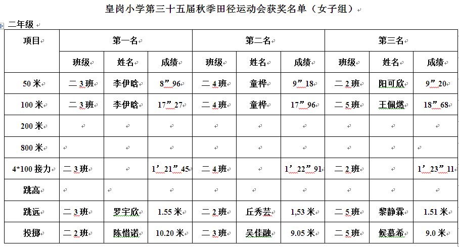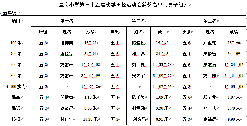 皇岗小学第三十五届田径运动会 | 英雄榜(个人)