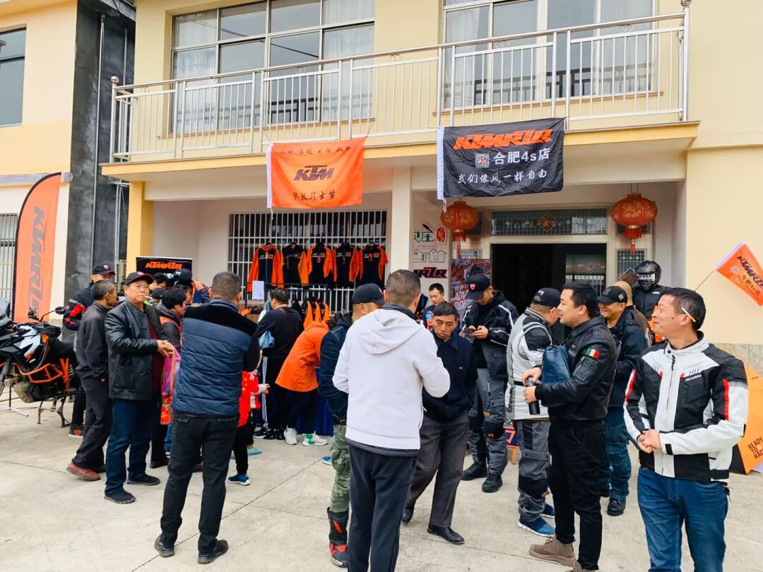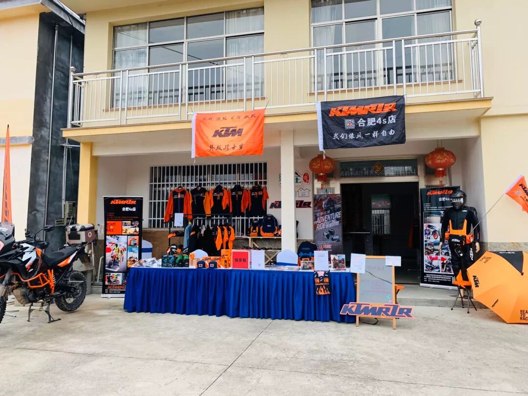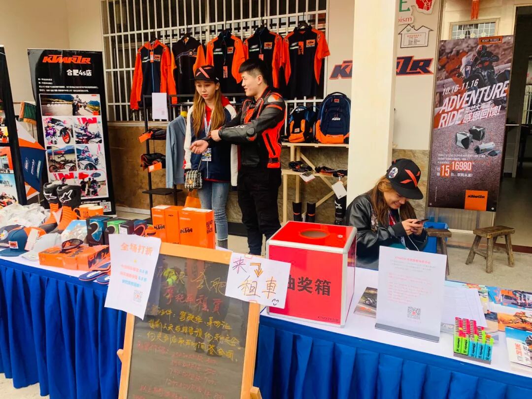 KTMR2R合肥店展位门口,各种试驾体验,购买装备,领取纪念品的骑士滔滔不绝。