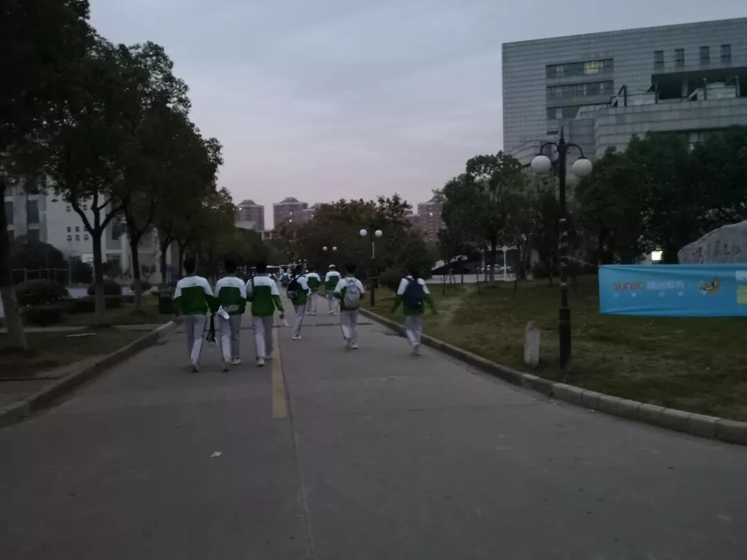 每天准时5:30起床,来到图书馆门前集合,坐上公交车,长街黑暗无行人,食堂的小店冒着热气,赶到五环体育中心,晚上趁着夜色,充实的回到学校。已经习惯了披星戴月的生活。