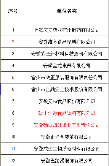 7宿州市2019年失业保险稳岗返还困难企业名单公示,砀山2家企业根据人社部《关于失业保险支持企业稳定就业岗位的通知》(人社部发〔2019〕23号)和《宿州市失业保险稳岗返还工作实施方案》(宿人社秘[2019]228号)要求,经审核,拟向上海庆安药业宿州制药有限公司等12家符合条件的申请单位发放稳岗补贴,预计返还补贴资金1236万元。