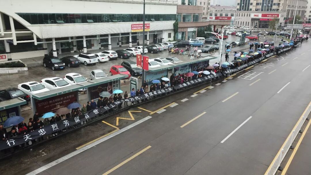 上午10时40分,王歆、梁峰烈士骨灰在车队的护卫下从台州市殡仪馆出发,缓缓而行,分别驶往椒江烈士陵园和金清镇霓岙公墓。