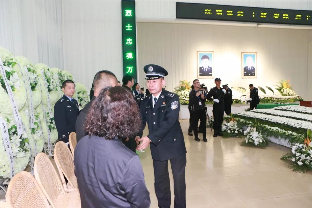 10月27日上午8时,王歆、梁峰烈士追悼会在台州路桥殡仪馆隆重举行。在低回的哀乐中,他们的亲属、同事以及社会各界人士共千(万)余人沉痛送别用生命践行从警初心的烈士。
