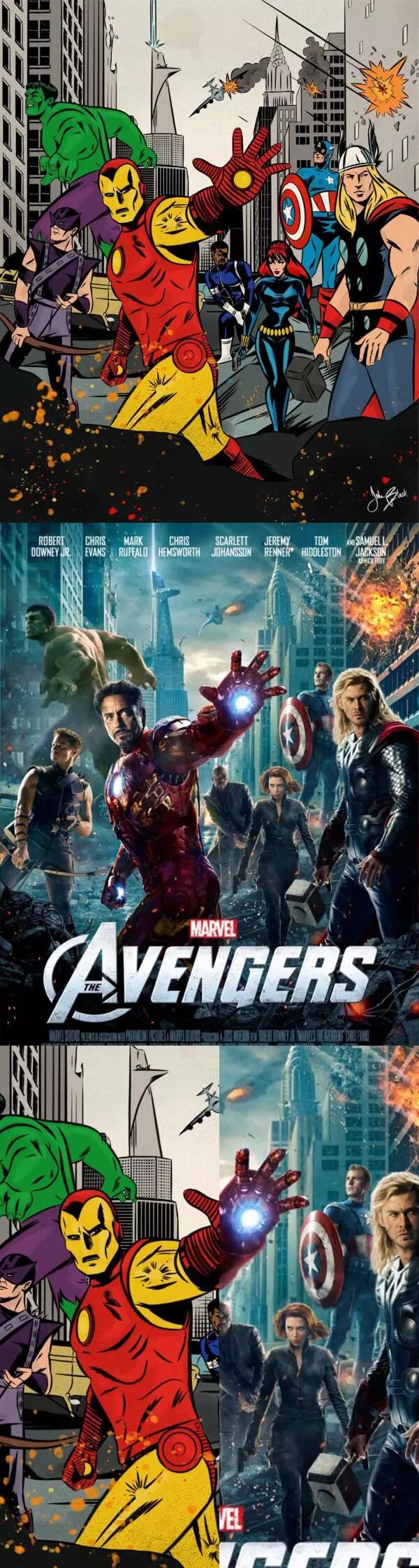 2.艺术家John Black用漫画画风还原了超级英雄电影海报和剧照!包括#复仇者联盟#、#蜘蛛侠#、#小丑#、#蝙蝠侠#、#奇异博士#、#惊奇队长#等