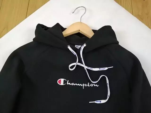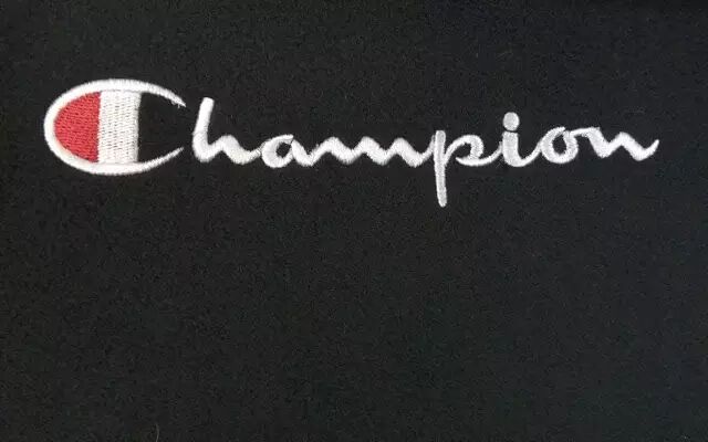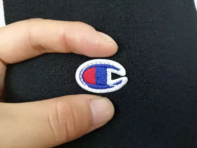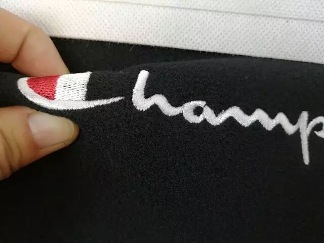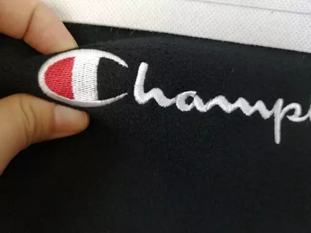 胸前红白两色的重工champion英文草写刺绣 非常的精致