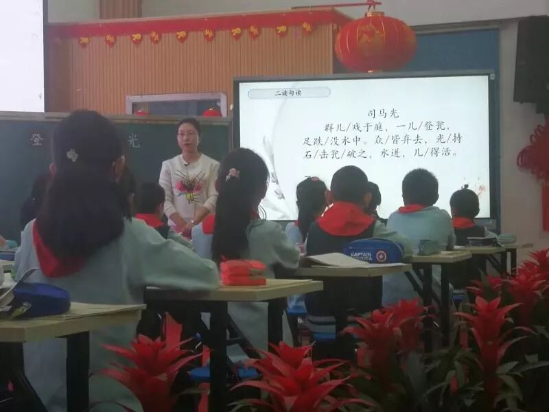 琚凌康老师执教的是三年级的小古文《司马光》。琚老师由故事导入激趣,再运用多种形式引导学生读准、读顺课文。然后借助注释带领学生理解,并归纳出解读小古文的方法。在琚老师深入浅出的教学后,学生借助图片当堂背诵出课文。最后,琚老师语重心长地教学生要学好小古文,弘扬传统文化。
