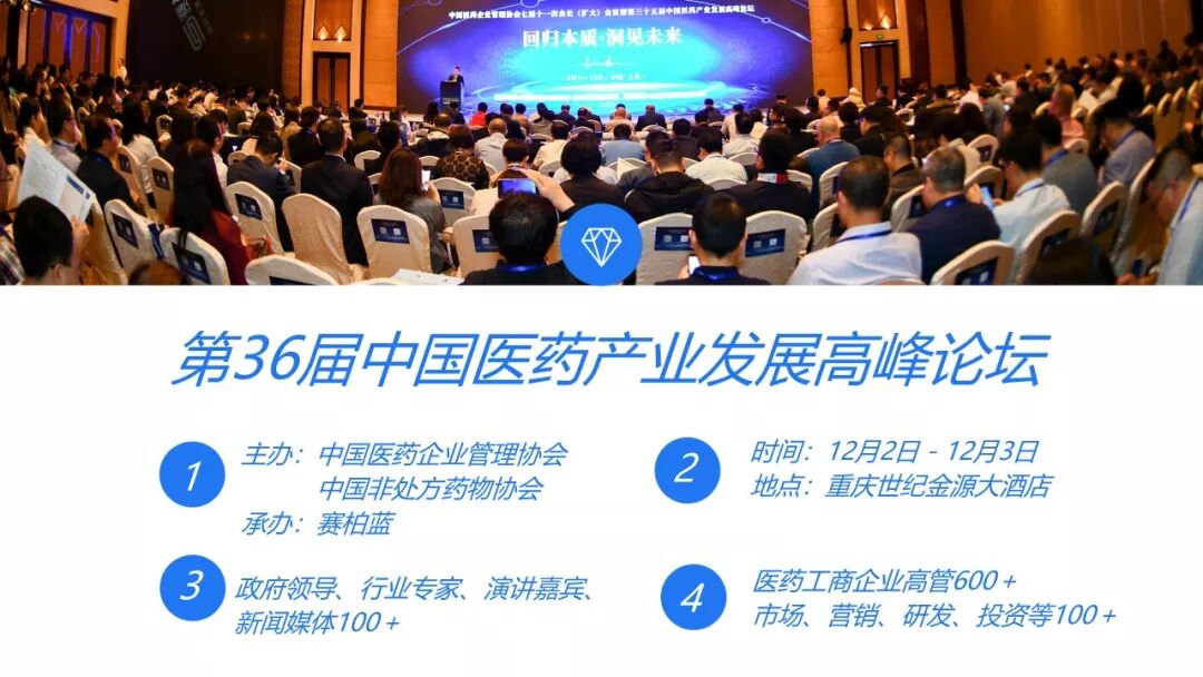12月2-3日,第82届全国药品交易会前夕,2019赛柏蓝峰会·第三十六届中国医药产业发展高峰论坛将在重庆隆重举办。