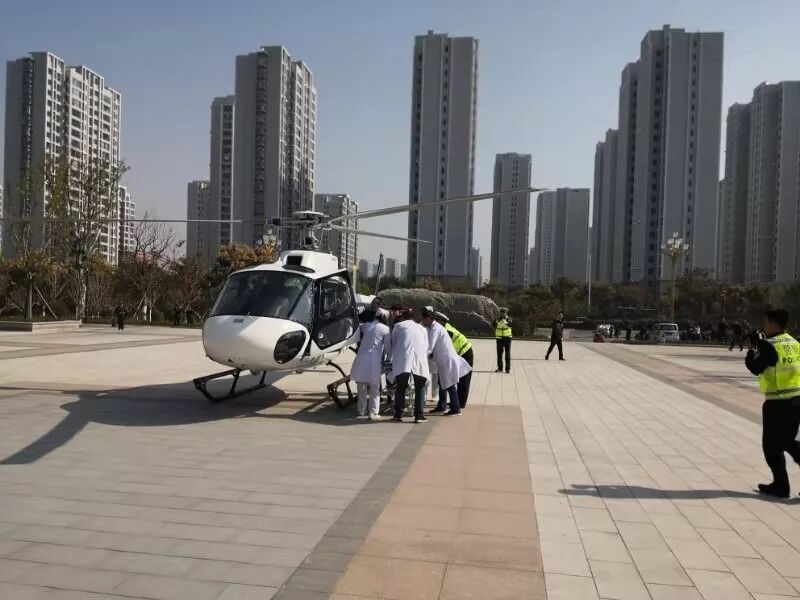 10月27日8点40分许,在张店区湖罗路郭辛村路段发生一起两辆大型货车相撞的交通事故,其中一名驾驶人受伤。因事故现场周边道路车流量较大,根据事故现场实际情况,淄博市公安局交警支队与张店交警大队两级事故处理部门果断迅速启动“空地一体化”救援机制,与医疗急救单位山东远航通用航空公司联动,动用直升飞机实施救援,及时将伤者送至淄博市中心医院西院区,使伤者得到了及时救治。
