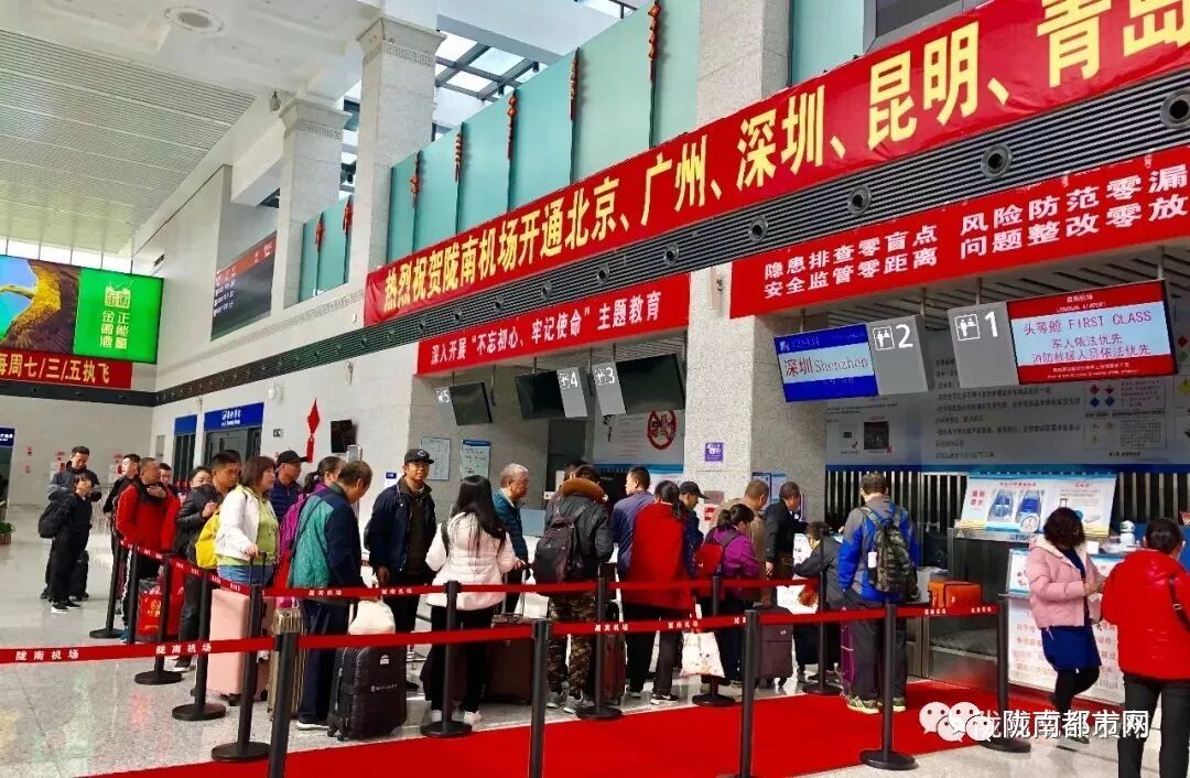 2019年10月26日,随着中国南方航空CSN8433次航班在陇南机场落地,陇南机场实现旅客吞吐量24.01万人次,首次突破24万人次大关,这是陇南机场通航近2年来实现的又一次历史性跨越——标志着陇南机场提前6年突破了“2025年旅客吞吐量24万人次”的设计目标!
