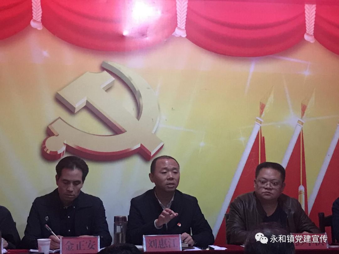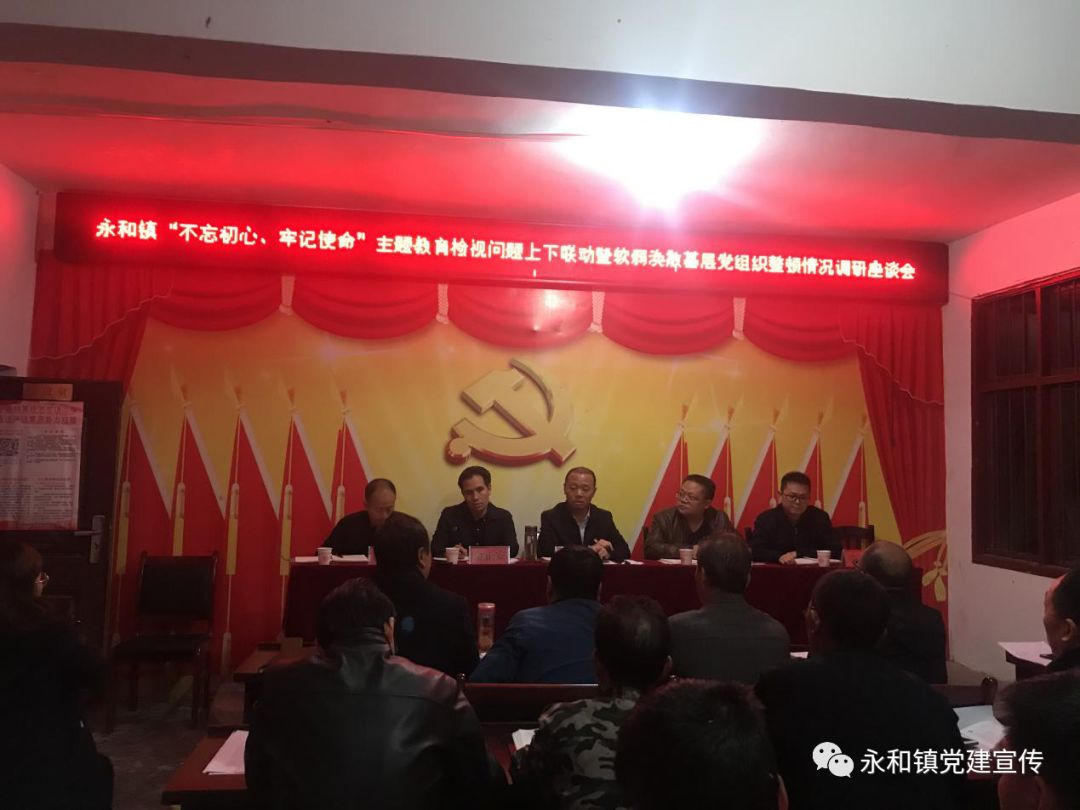 10月24日,县委常委、组织部部长、县委主题教育领导小组副组长、县委主题教育办主任刘惠江一行赴永和镇,组织召开“不忘初心、牢记使命”主题教育检视问题上下联动暨软弱涣散基层党组织整顿情况调研座谈会。