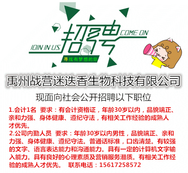 二、招聘条件:19-40周岁、吃苦耐劳,有美业经验者优先。