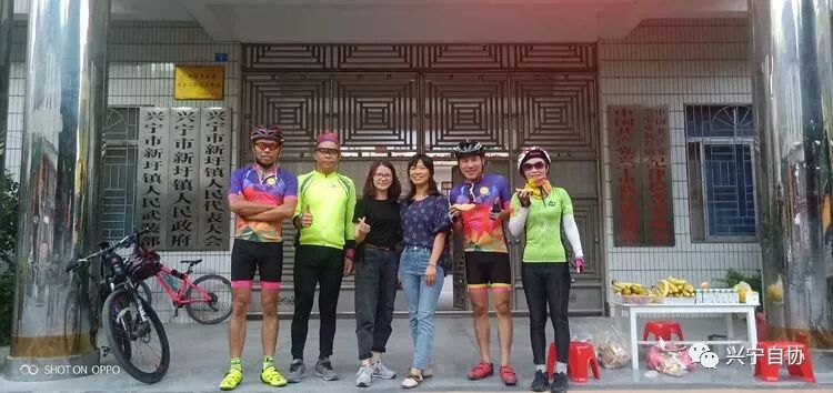 骑友们来到了第十四个打卡点新圩镇政府门口
