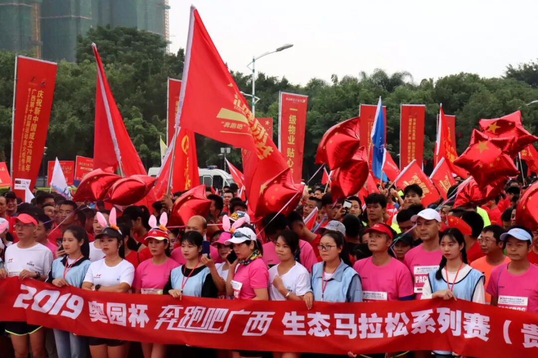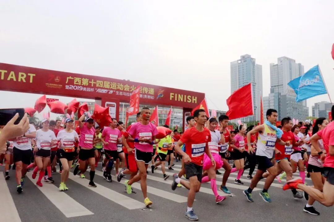 10月26日上午,2019年广西第十四届运动会火炬传递暨2019奥园杯“奔跑吧广西”生态马拉松贵港站在贵港鸣枪起跑,来自全区各地的跑步爱好者们在广西壮族自治区“鱼米之乡”、“甘蔗之乡” 、“莲藕之乡”--贵港市的赛道上同场竞技,在奔跑中领略“荷城”魅力。其中,70名火炬手中有三位是来自桂平石龙,他们是覃海军、戴彬桓、杨伟。