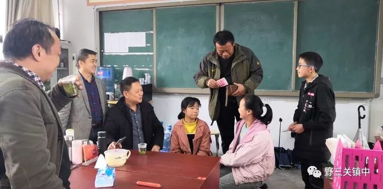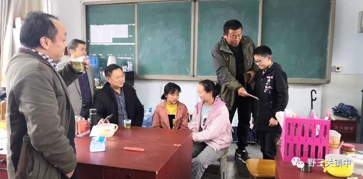 10月26日下午,爱心人士肖年和游建国一行4人在张海斌校长的陪同下来到野三关镇中八年级关心资助田晓静、付金碧、田璇。