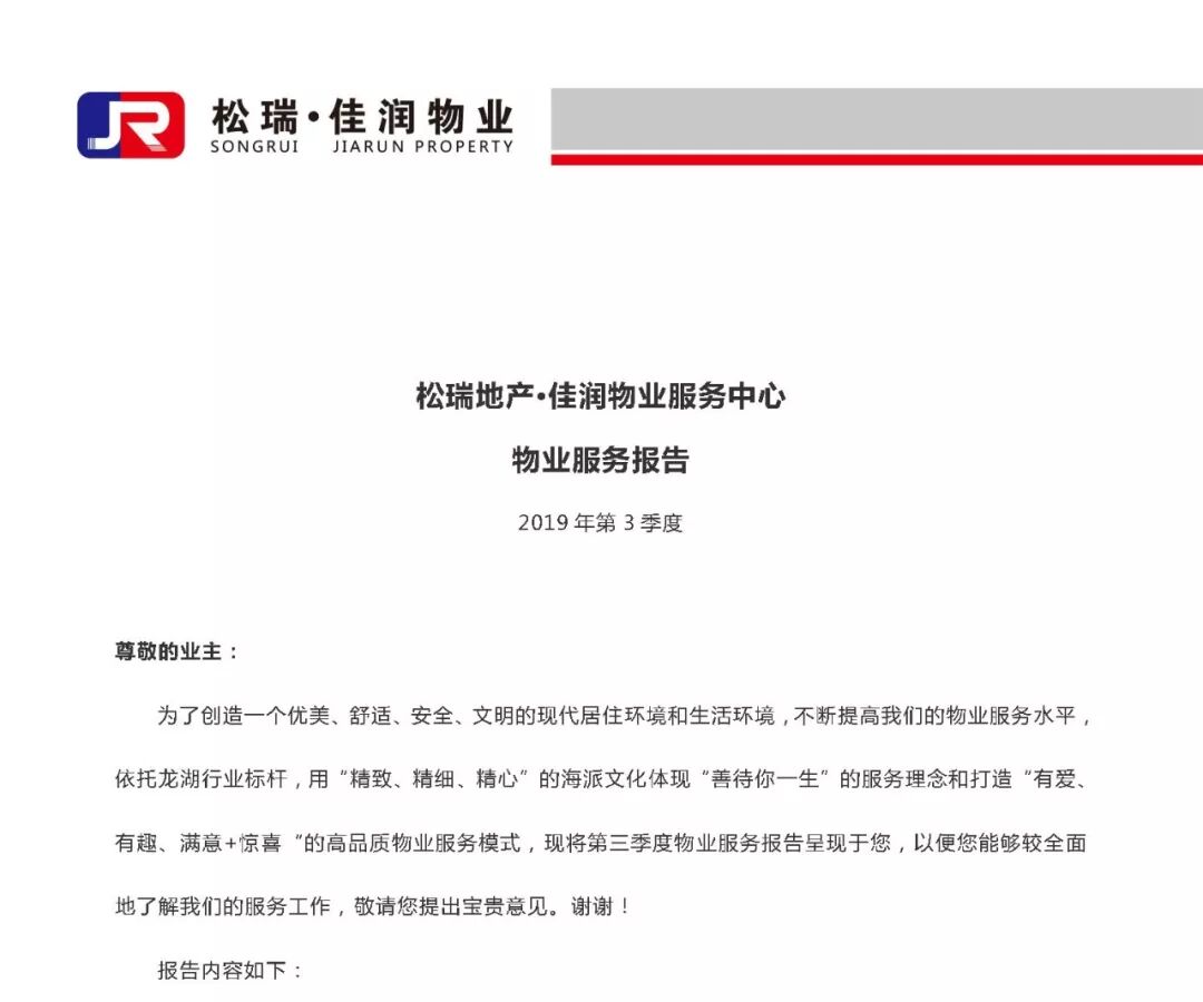 服务报告 | @所有业主,您有一封物业季度服务报告,请查收!