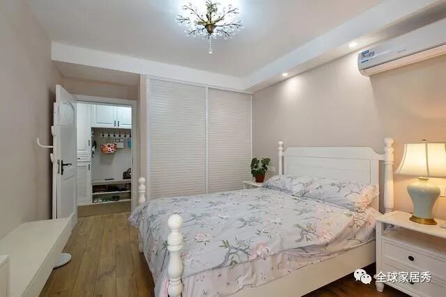 次卧在玄关鞋柜的对面,灯具是点睛之笔;