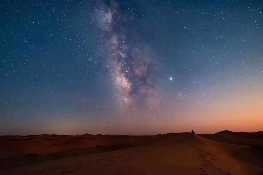 这里除了黄沙 ,还有壮美的星空、绿色草场、白色盐湖、大漠落日。