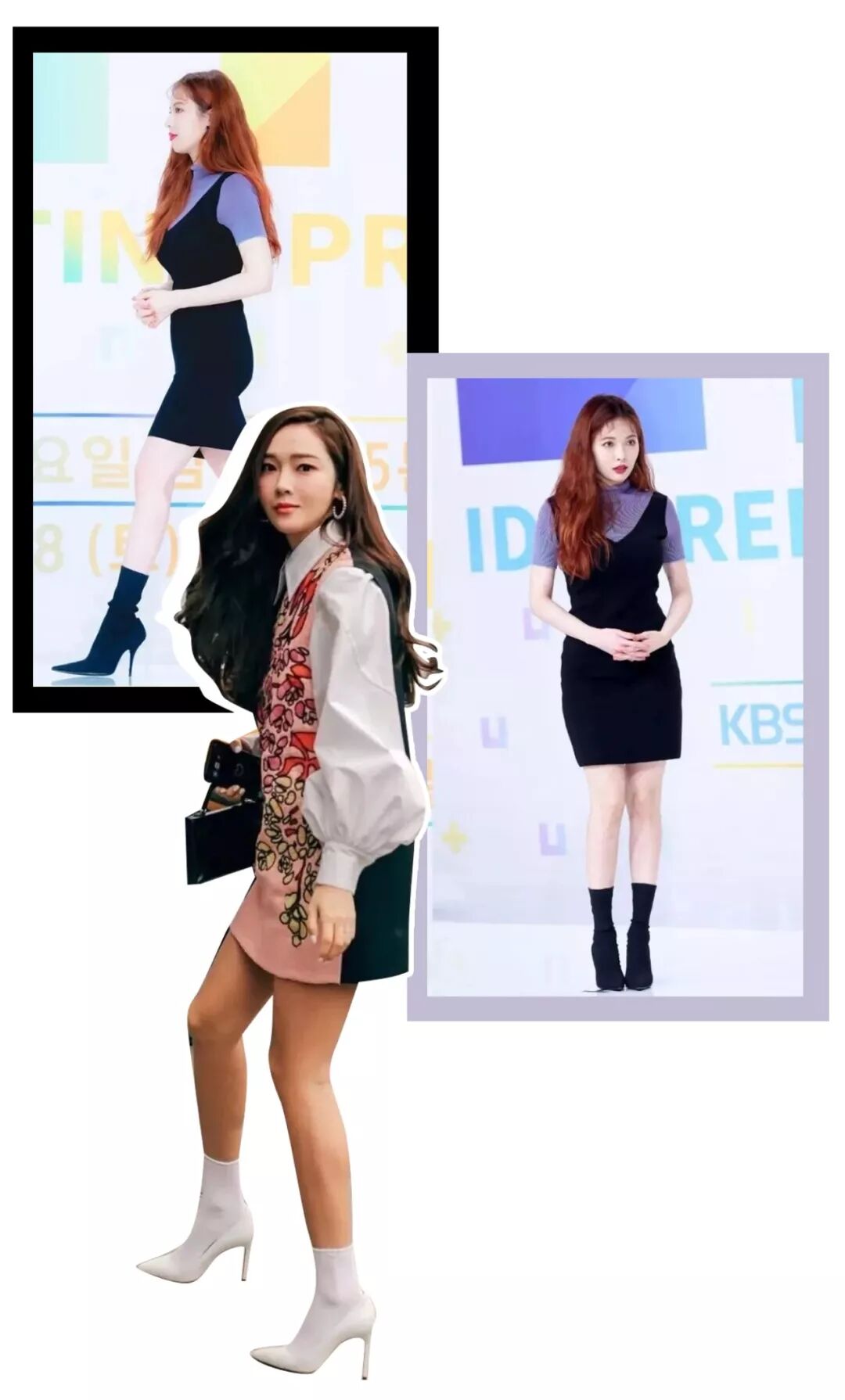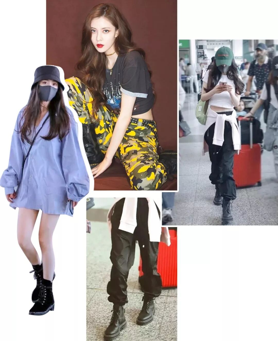 不过比起迷笛裙配马丁靴,A字短裙+靴子的清新减龄,就来的更“简单粗暴”了,谁穿谁俏皮~