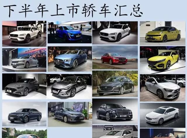 下半年上市轿车明细:全新一代奥迪A6Avant/Allroad、奔驰B级、宝马M5雷霆版、全新飞驰、慕尚、标致508、208、全新卡罗拉、东风风神奕炫、全新金牛座、传祺GA6、红旗H5运动版、红旗H7/L5双色版、江淮A432、捷达VA3、林肯大陆、领克03+、阿特兹、全新轩逸、荣威i5GL、新速派、沃尔沃V60、S60、第十代索纳塔。