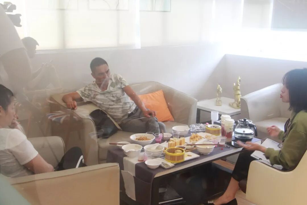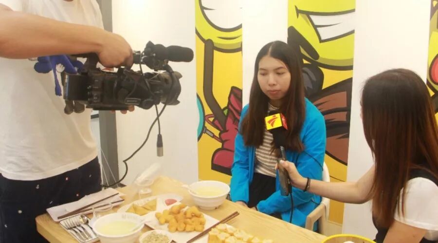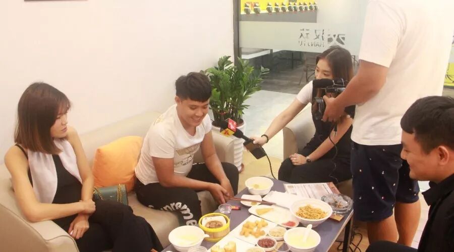 来访客户跟广东电视台记者详细的介绍了自己的创业历程,来到鲜儒豆浆总部考察的原因以及即将加盟什么项目等,与广东电视台记者进行了热烈的交谈。