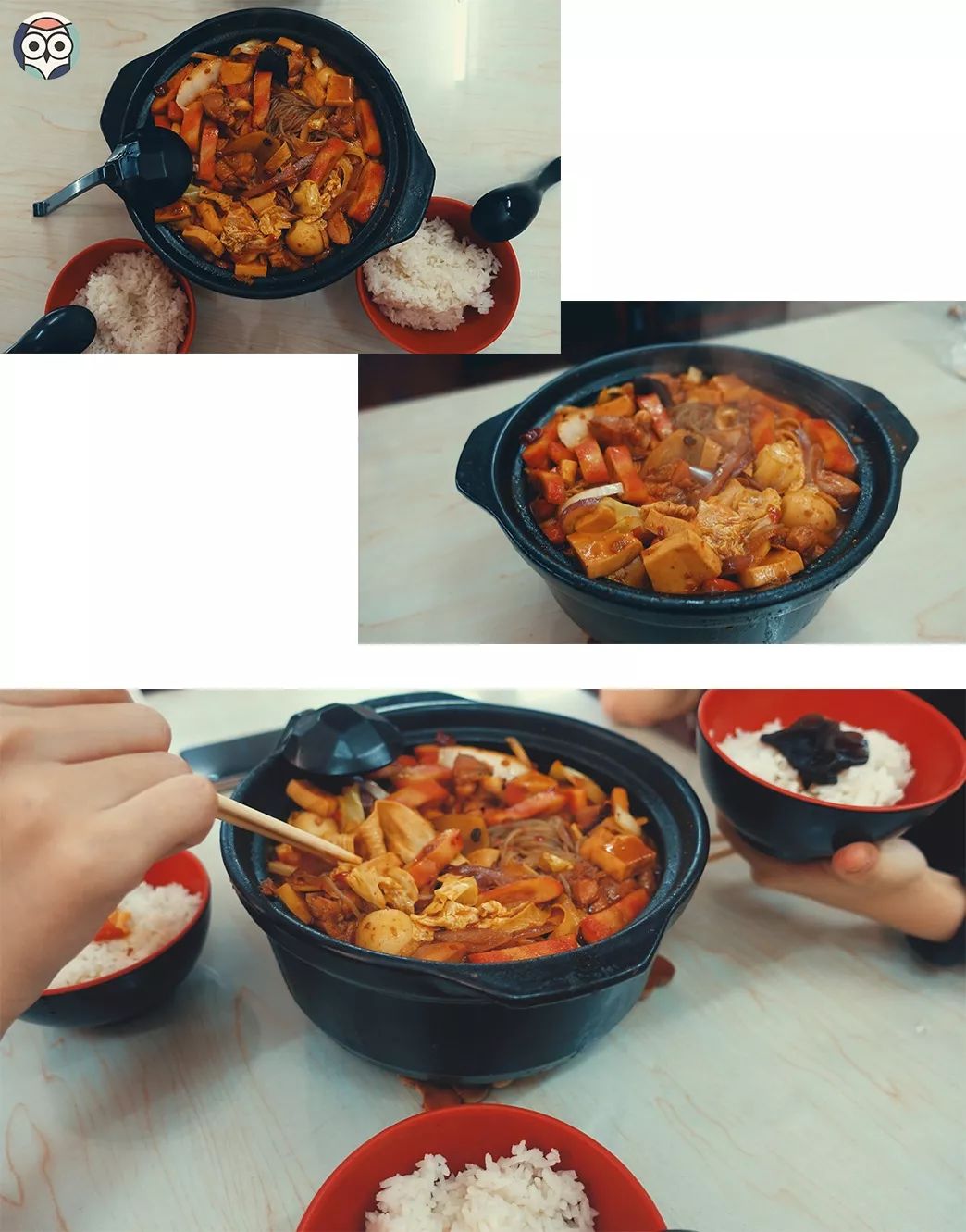 晚饭的话,Claudia就吃得比较随意了,可能是加双份肉的山东杂粮煎饼,可能是一碗“奇香无比”的螺蛳粉,可能是食堂三楼的麻辣香锅...反正基本上学校里能吃的她都尝了个遍。