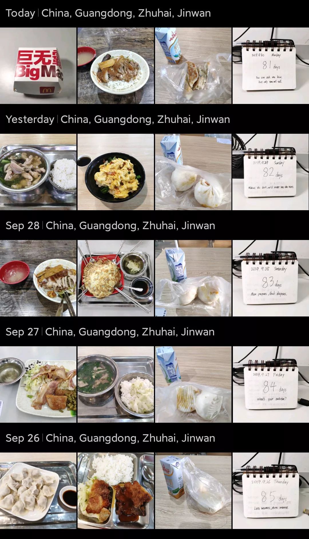 吃饭必须是很重要而且很有仪式感的事了!!而且每餐饭之前必须是手机先吃,哈哈哈,千篇一律的宿舍-饭堂-图书馆三点一线生活里,每天能吃上不同的东西,是枯燥的备考过程里为数不多的的慰藉了,每天晚上睡前都要翻一下相册看看自己今天的“战果”,想想明天三餐吃什么,然后就有了第二天早起去吃早餐的动力了,为了错开学校上下课高峰节省排队时间,我的吃饭时间安排是早上7点30分,中午11点30分和晚上17点30分出发,然而我的肚子经常提前半小时甚至一小时就开始抗议了,所以我的饭点一般只会提早不会推迟,吃完饭回到座位上摸摸肚子听听歌感觉是一天里最幸福的时刻了,感觉一切烦恼和压抑都消失了,哈哈哈!