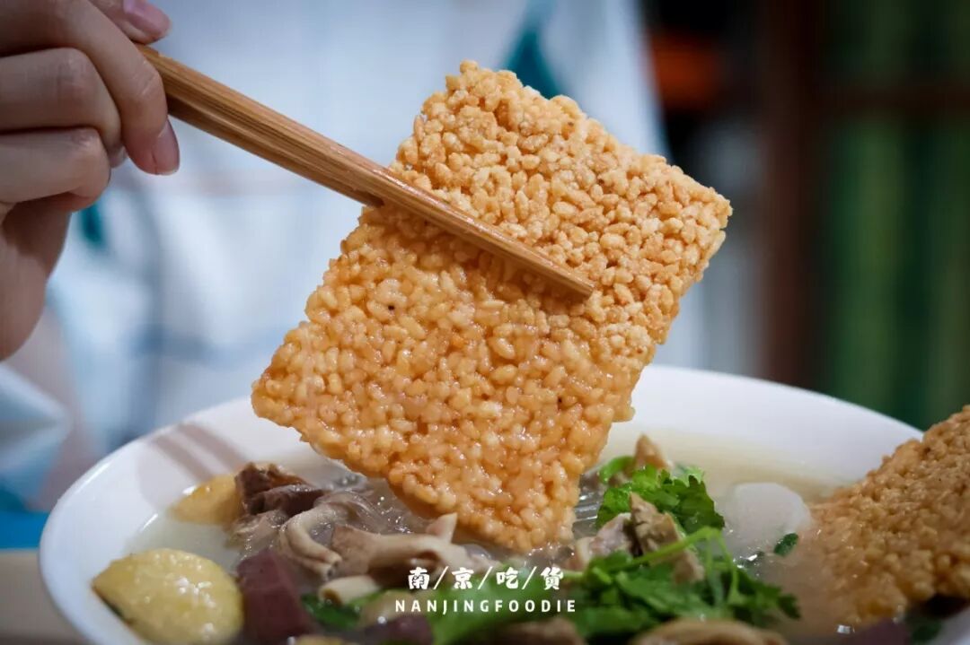 小攻加了一份锅巴,泡在醇鲜的鸭汤里,不一会就变得酥软。酥香和鸭汤的鲜香融合,别有滋味。