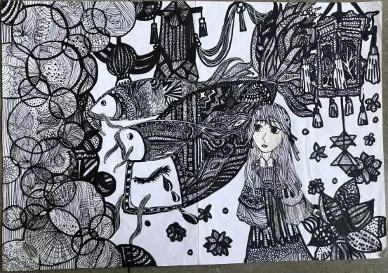 叮铃铃~下课了,大家快来看啊,一幅幅精美的画作,都是在课堂上完成的。