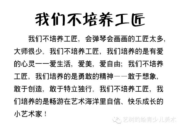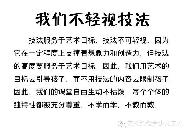 “美国老师从来不担心学生画出蓝月亮,怕的是他们画的月亮与天上的月亮一模一样。”这是詹华如《美国教育为什么有后劲》中说的。很显然,他们的美术教育不是简单的方向技术传授,而是相反,被当作突破规范思维的训练手段。其结果,他们挣脱了思维的枷锁。儿童教育的关键是老师和家长,关键的关键是老师和家长是否认识到启蒙教育的性。尤其是启蒙老师,如果启蒙的时候搞错了,以后九头牛也拉不回。所以各位家长,老师,千万不要只看眼前,千万不要把美术学习当规范技法来整。否则就是捡了芝麻丢了西瓜了。而对于家长来说,需要抓住孩子的成长关键期,选择专业的艺术教育品牌,美术教育举足轻重,时机错过,永不再来。但是,在教学方法上也是有讲究的,方法不同,侧重点不同,其结果也是完全不同。