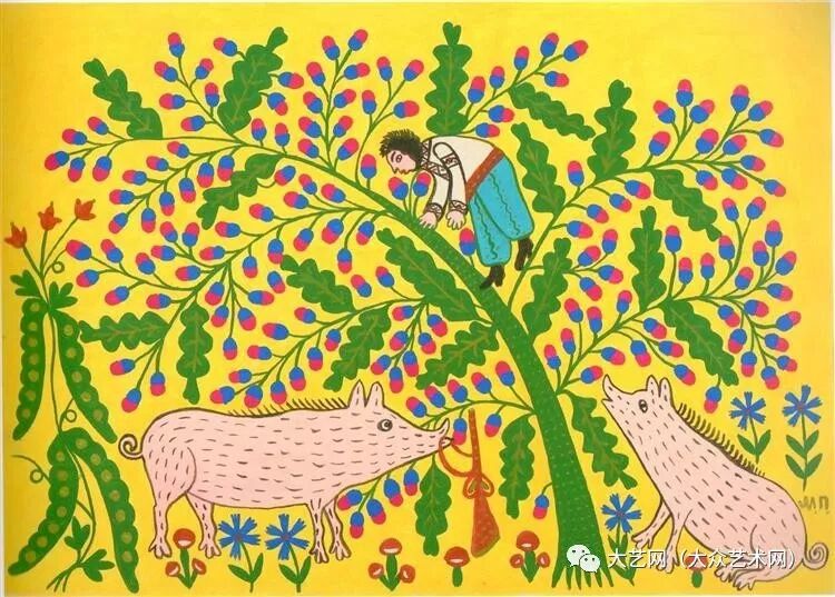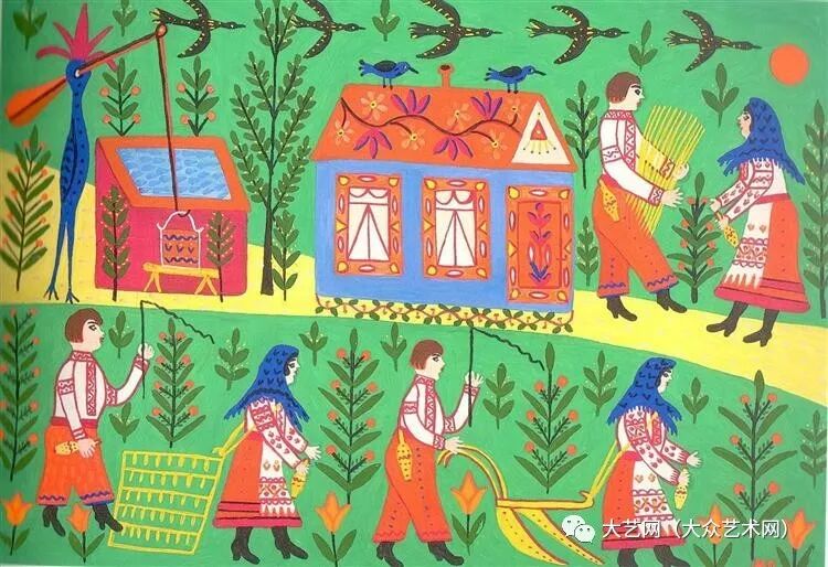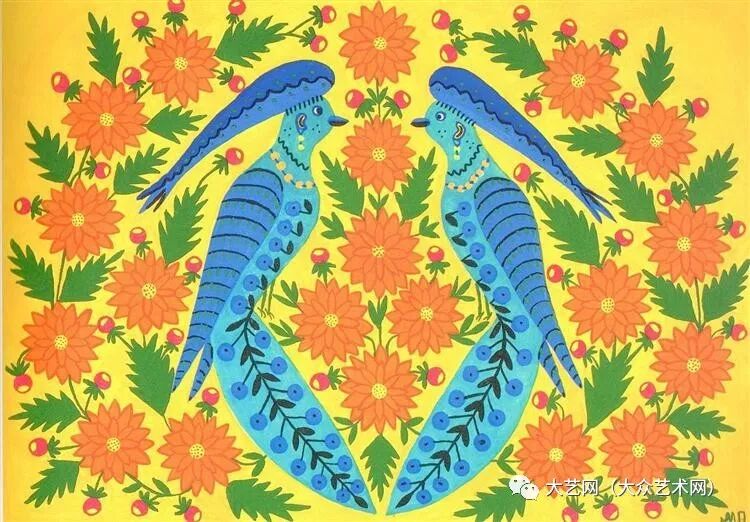 大众艺术网:乡村民间朴素艺术的代表 —— 乌克兰装饰画民间大师玛丽亚·普里马琴科(Maria Pryimachenko)绘画作品