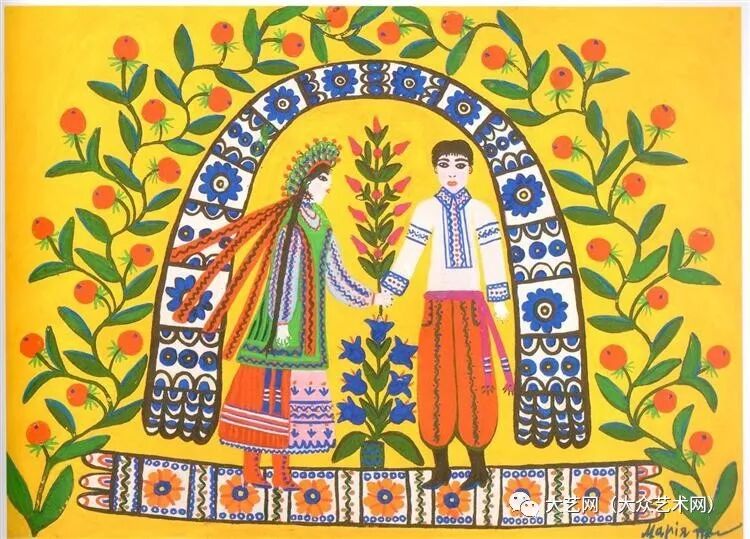 乌克兰装饰画的民间大师玛丽亚·普里马琴科(Maria Pryimachenko,1908年至1997年)是乌克兰乡村民间美术画家,是朴素艺术的代表。艺术家参与了陶瓷绘画,刺绣和绘画。