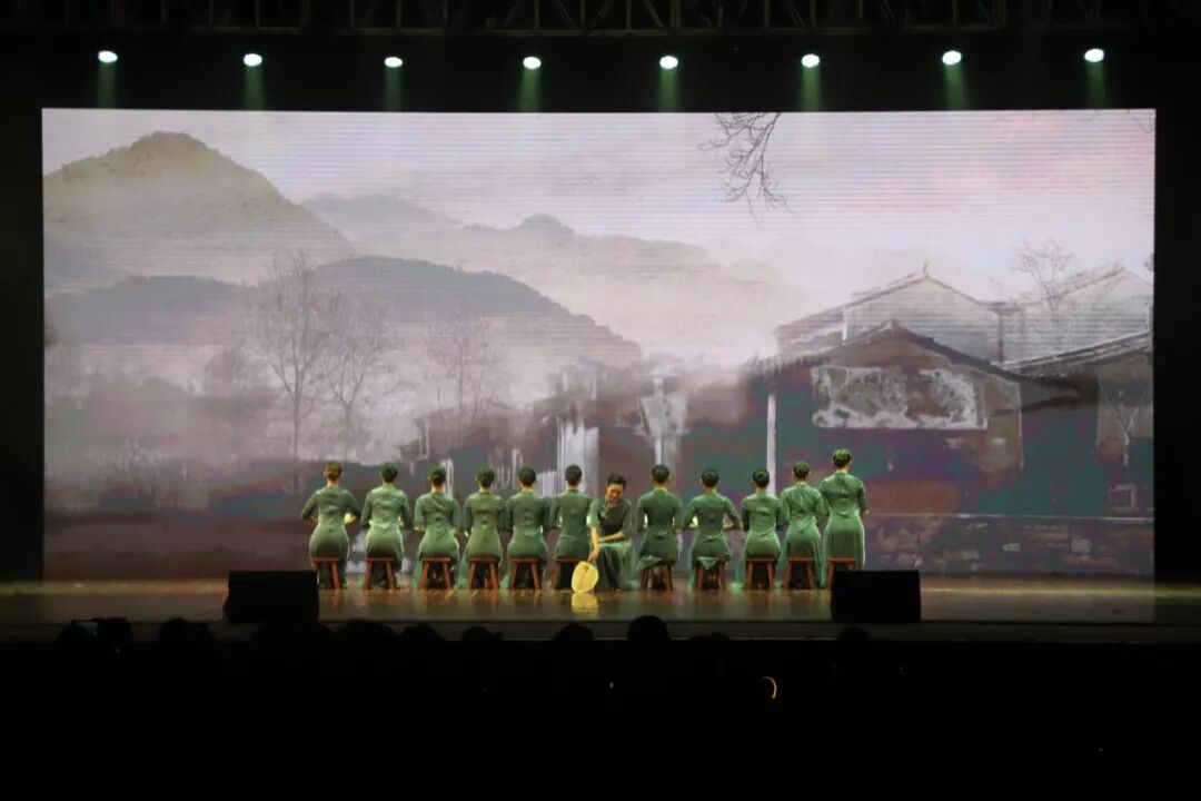 轻轻蒲扇摇,声声渔光曲。《渔光曲》的旋律流送,在曼妙的身姿中我们轻轻荡进江南的水光山色,随醉人的波澜懒懒摇晃,舒展腰肢,正挥洒,正升腾,聚百般柔情放飞梦想。随着蒙蒙烟雨,走进了多水的江南。在无数小桥绿水的衬托下,一曲《渔光曲》更显江南的柔媚。应着乐曲,朵朵滴露的红莲在台上徐徐绽放,又慢慢地升起,飘入云天。雨中走来了一群窈窕秀美的绿衣女子,她们撑着轻薄的蒲扇在雨中漫步。柔软的绣花绿纱袖从手腕;轻轻滑落,露出嫩笋般的手臂;一张张笑容荡漾的面庞,随着轻捷的步子不停地旋转着,那飘逸的袖角、裤裙如阵阵绿风、绿烟、绿雾……她们如江南的水一样,慢慢地流着,流着,永不停息。