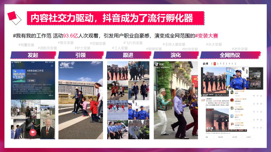 除此之外,围绕同一议程,抖音的视频内容不仅高度对应,还是可继承的,在发展的。