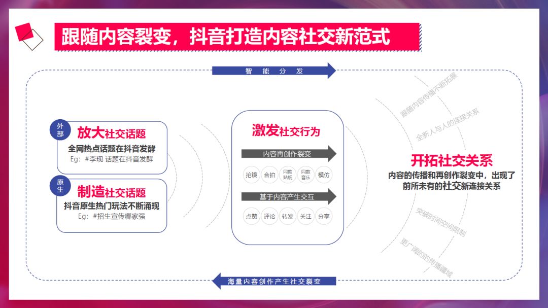创作上,是可以一起参与创作,一起传播分享,每个人都是这个短视频内容的一个节点,每个人都传播给更多的人。