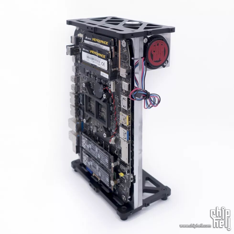下面就是这次方案的主角:INTEL NUC8I7HVK 搭载了INTEL的I7-8809G处理器,处理器集成来至AMD的VEGA M显卡芯片,且自带4GB HBM2显存。虽已上市一年之久,但仍是目前市售最强NUC,性能略低于i7-7700+GTX1060,主机体积仅1.2L。旧主板使用一年以来十分稳定,没有出现过任何问题,大部分网游高画质通吃,玩了大概50小时的刺客信条:奥德赛,中等画质可流畅运行,高画质略微有些卡顿。