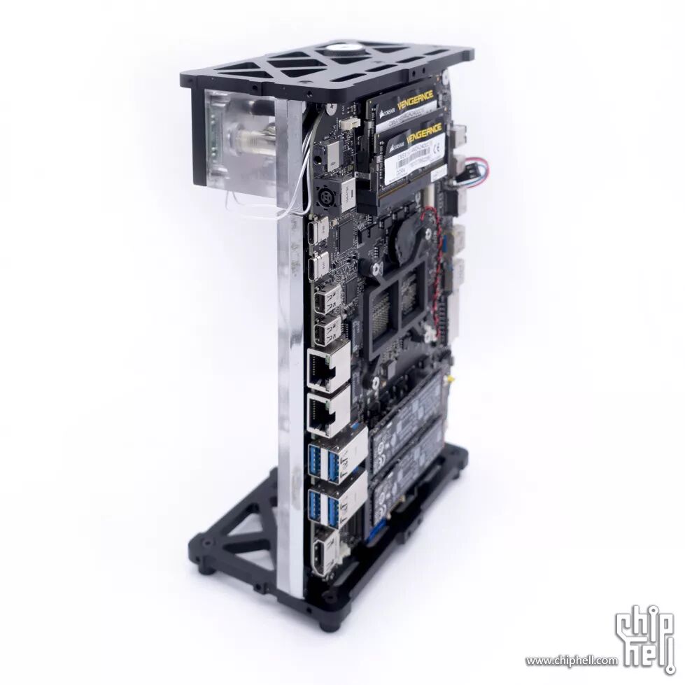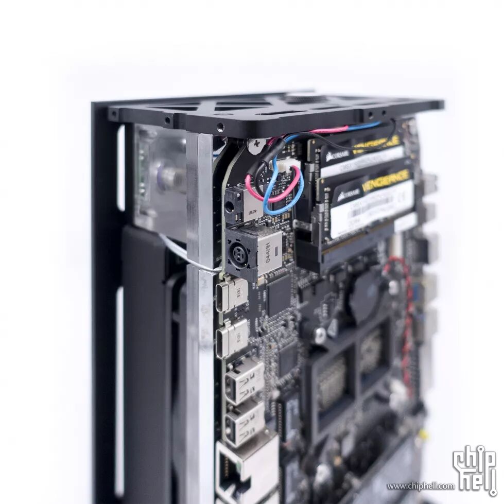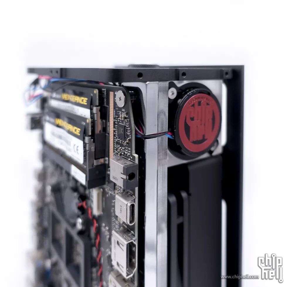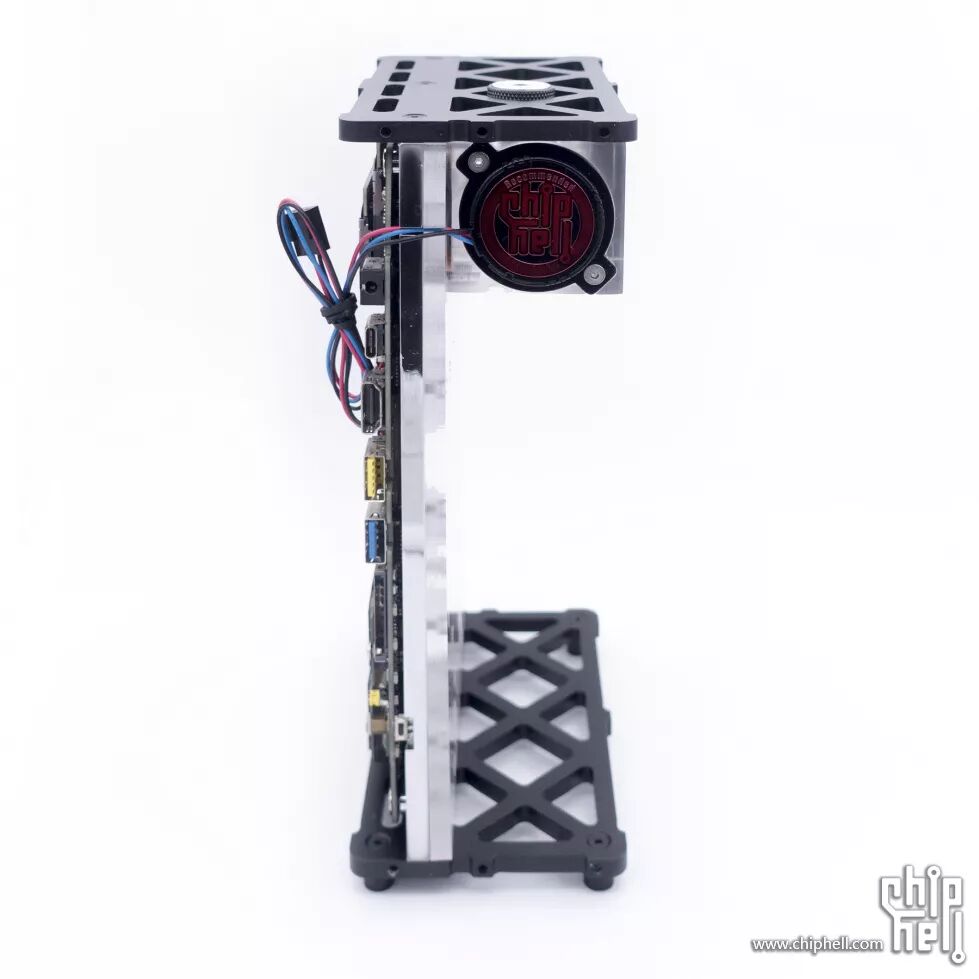 上下的支架固定在冷头上,所有外观覆盖件固定在两块支架上;这样做尽量减少了机箱的零件,还有一个好处就是机箱覆盖件可以做到一定程度的模块化,后期可任意更换外观样式。