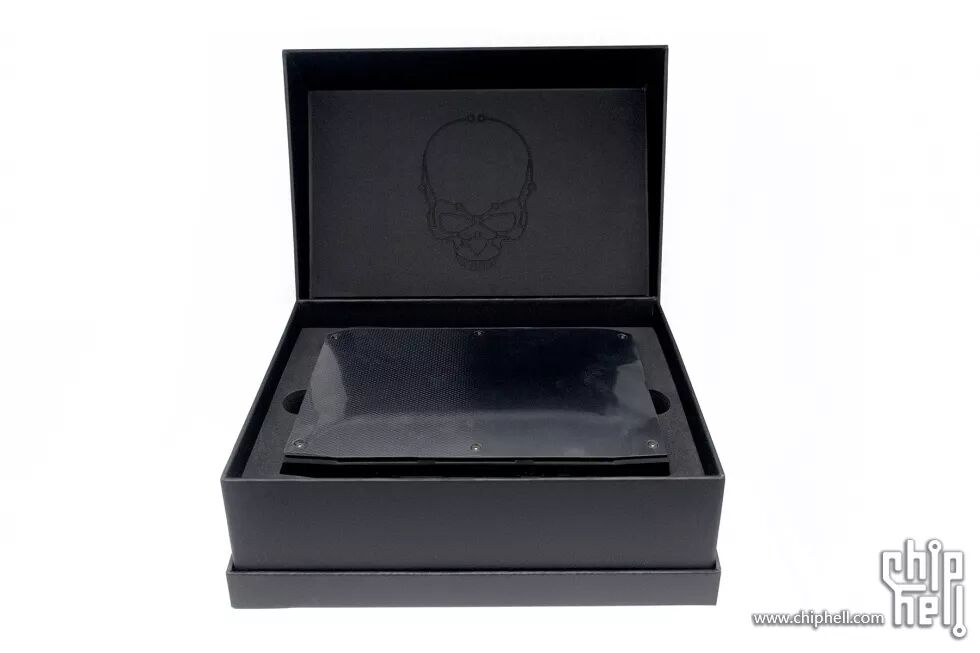 整个盒子做得比较有质感,翻开上盖第一眼看到的是INTEL峡谷系列NUC的骷髅图案,仪式感足足的;顺便拍了一张可以作为壁纸的骷髅图案特写。