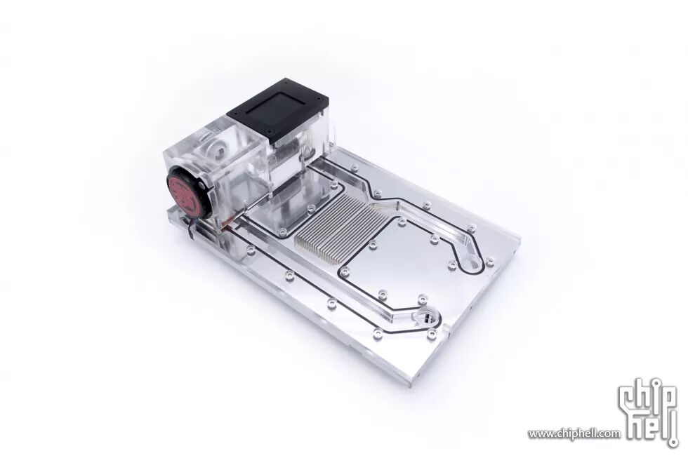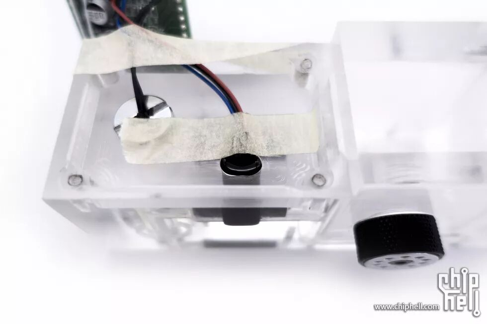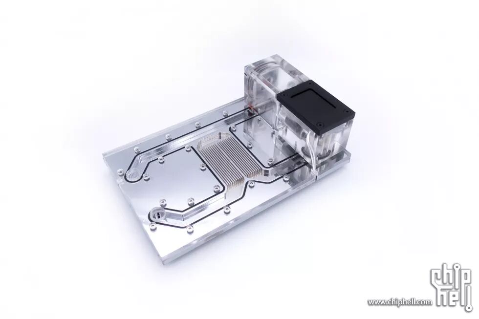 冷头盖使用的是无色透明亚克力,加工了螺孔与水道通孔。