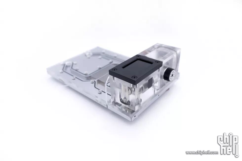 底部的2个通孔加工了G1/4螺纹,用于安装伸缩接头再连通冷排。