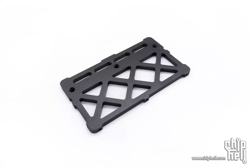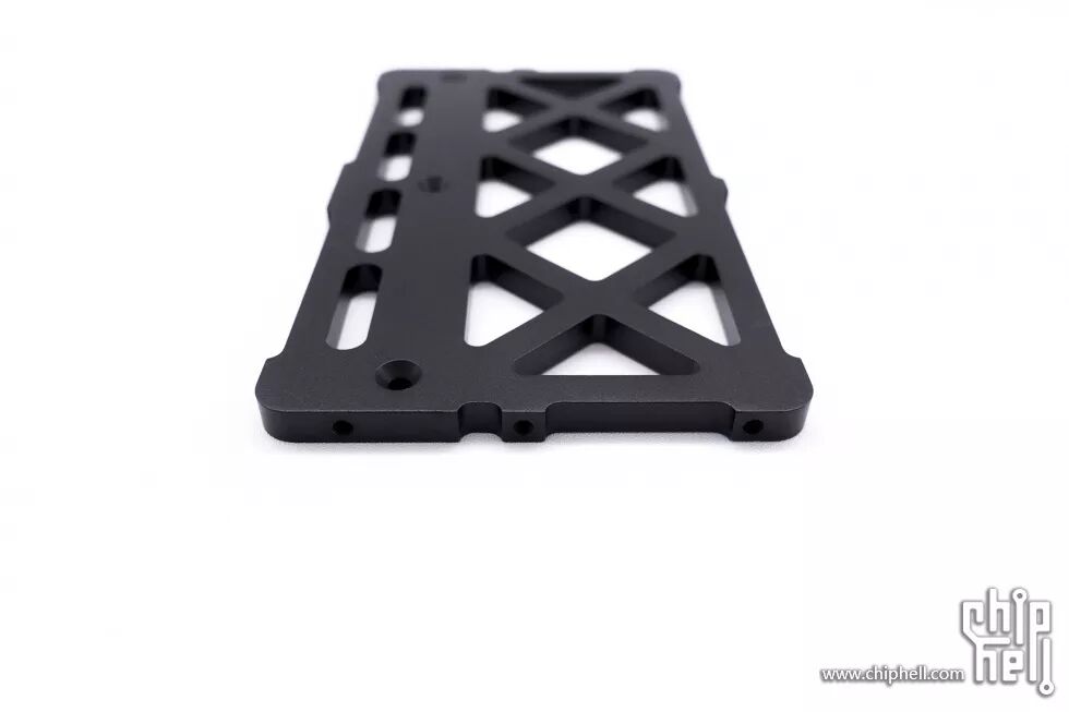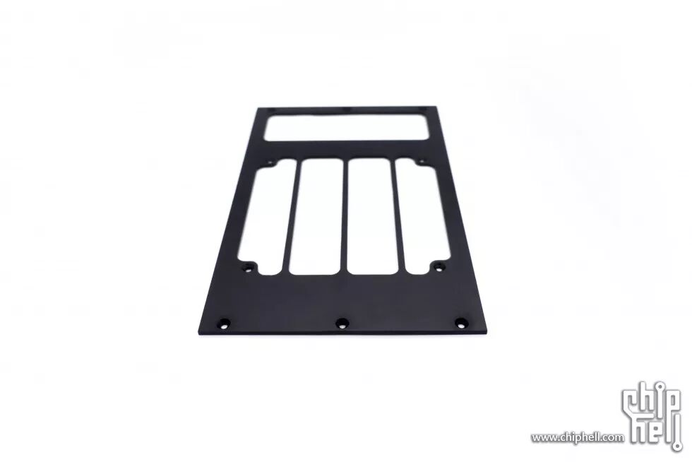安装于冷头上下两端的是带通风孔的支架,垂直风道也许对散热也有一定帮助;支架做的6mm厚度,便于在侧面加工螺孔,外观件通过螺丝固定在这些螺孔上。