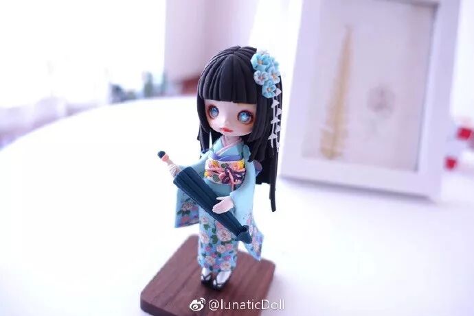 欣赏 蓝色和服MM粘土人偶