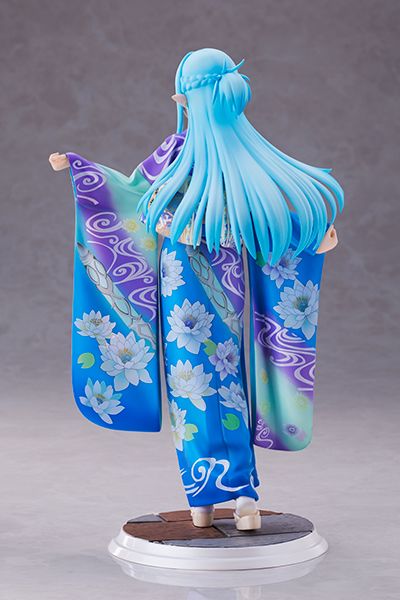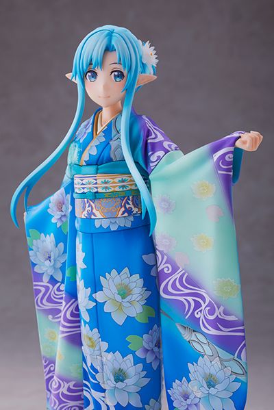 出自TV动画《刀剑神域》,以在ALO游戏里角色搭配身穿美丽的水蓝色的和服之姿的「亚丝娜」以1/7比例模型登场!这次是以A-1 Pictures 所绘制的图案为基础来予以立体化。 和亚丝娜相符合的单一色调的和服、宛如流水般的长发、 一抹微笑的表情、和服纹样也如实呈现,此外发型也可以变成长发型态。快将这美丽优雅的亚丝娜给迎回家吧。