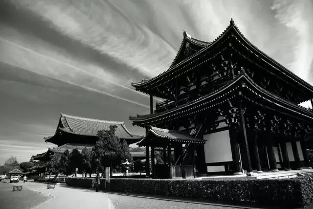 红枫之秋,自古总是容易带来文人的嗟叹与追忆,而寺院,在日本是禅文化的写意代表,枯木山水,素净庭院,佛教说的“极乐净土”,在日式寺庙庭院的建筑中,被充分展示。还有什么比深秋的红枫与庙宇房檐的走兽、庭院的青砖黑瓦在一起,更有诗意?
