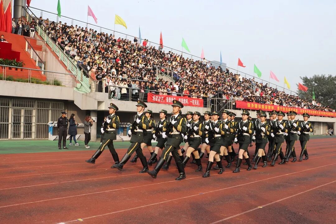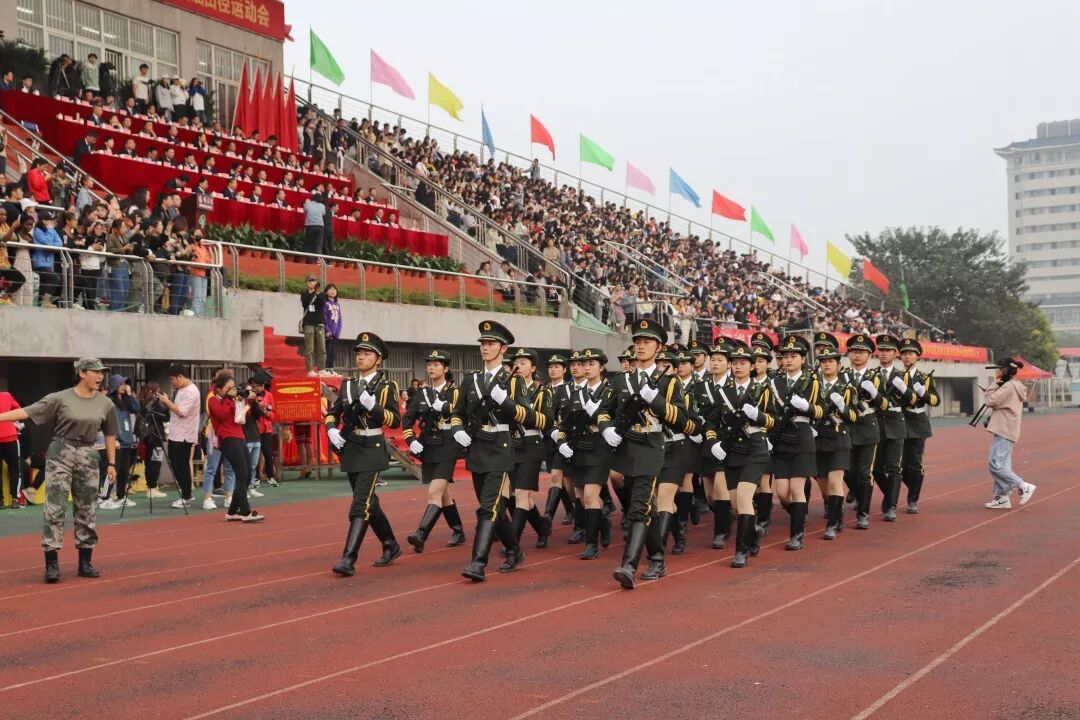开幕式上,各学院的代表团列阵各具特色,表演精彩纷呈。其中,国旗班方阵中一支由女子组成的护卫队高举校旗,昂首阔步,吸引了观众们的眼球。她们皆由外国语学院的学生组成,用整齐的步伐、坚毅的眼神向观众展示了“铿锵玫瑰”的英姿,诠释了“巾帼不让须眉”的真正内涵。