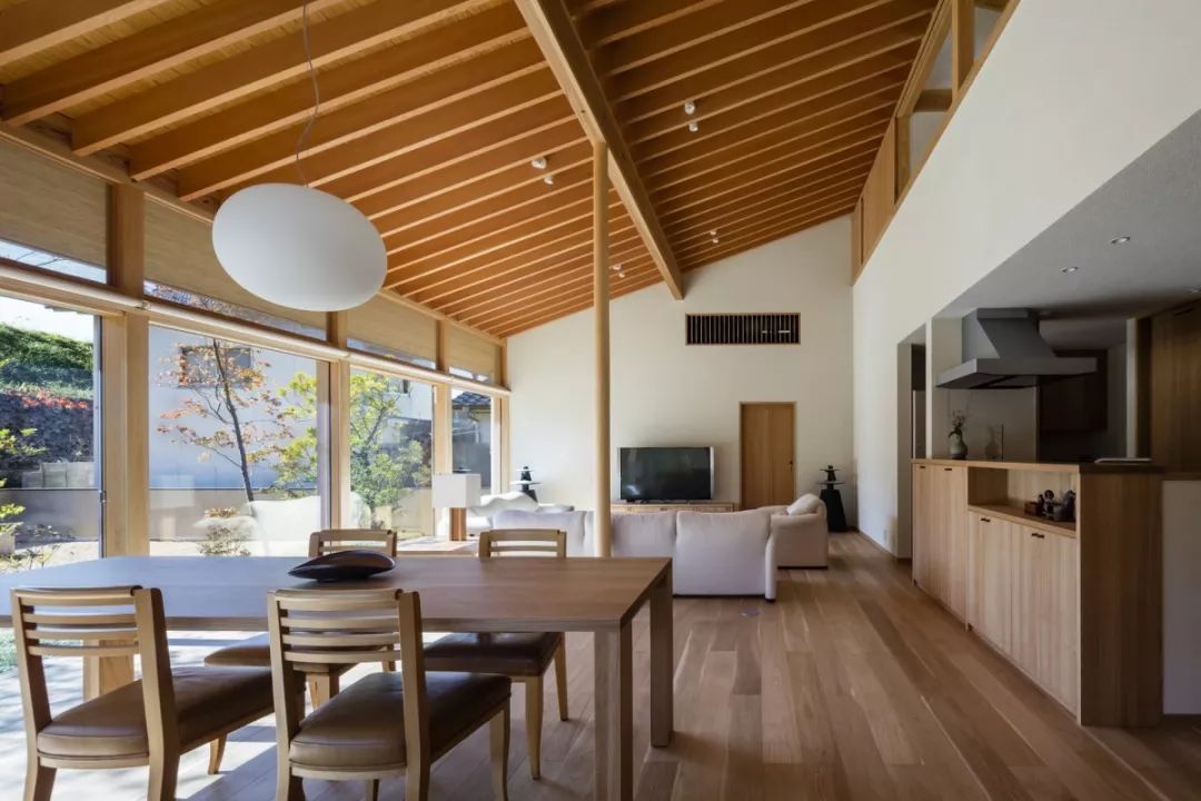房子通过大开开的开口部,能有效利用外部空间,保持空气流通,心情愉悦。