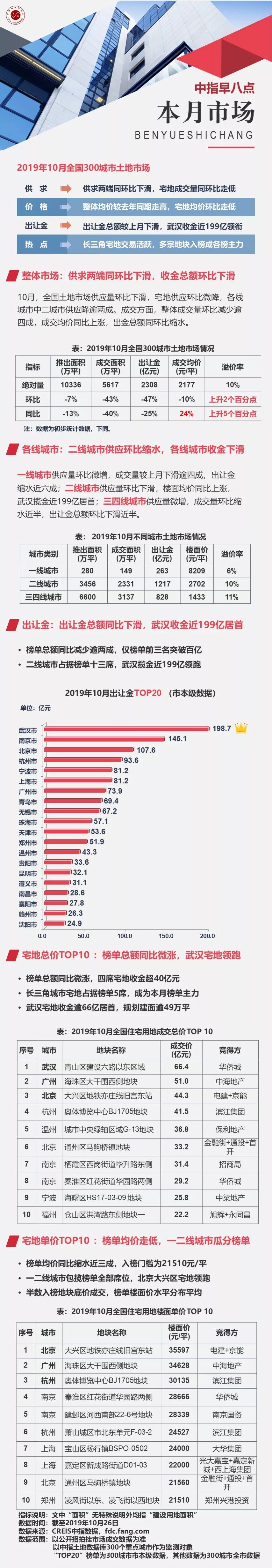 土地 | 供求两端同环比下滑,武汉揽金近199亿元领跑