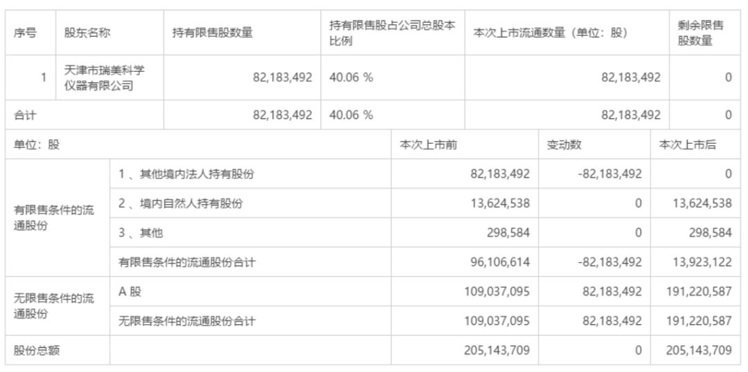10月24日,塞力斯(603716.SH)公布,本次限售股上市流通数量为8218.35万股,类型为首次公开发行限售股,共涉及1名股东天津瑞美,上市流通日期为2019年10月31日。