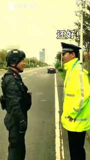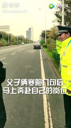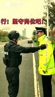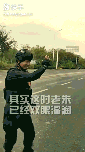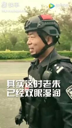 只见特警老朱亲切地拍拍儿子的肩膀,