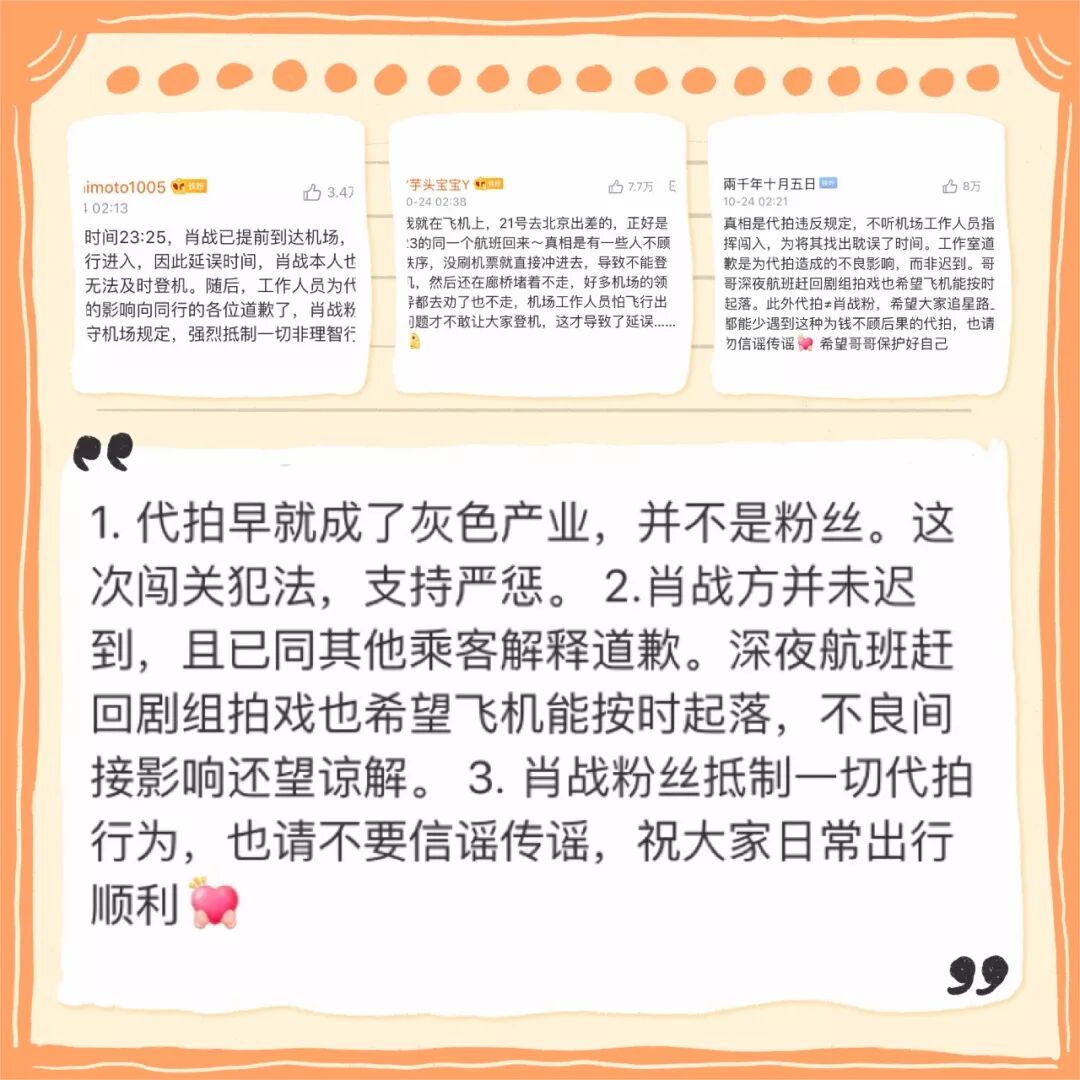因此这次航班延误并非小道消息里说的“肖战迟到”,而是代拍作乱。