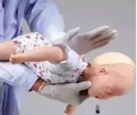 注:不要将宝宝双脚抓起,倒挂在空中拍打背部!不仅无法排出异物,还会造成宝宝颈椎损伤!